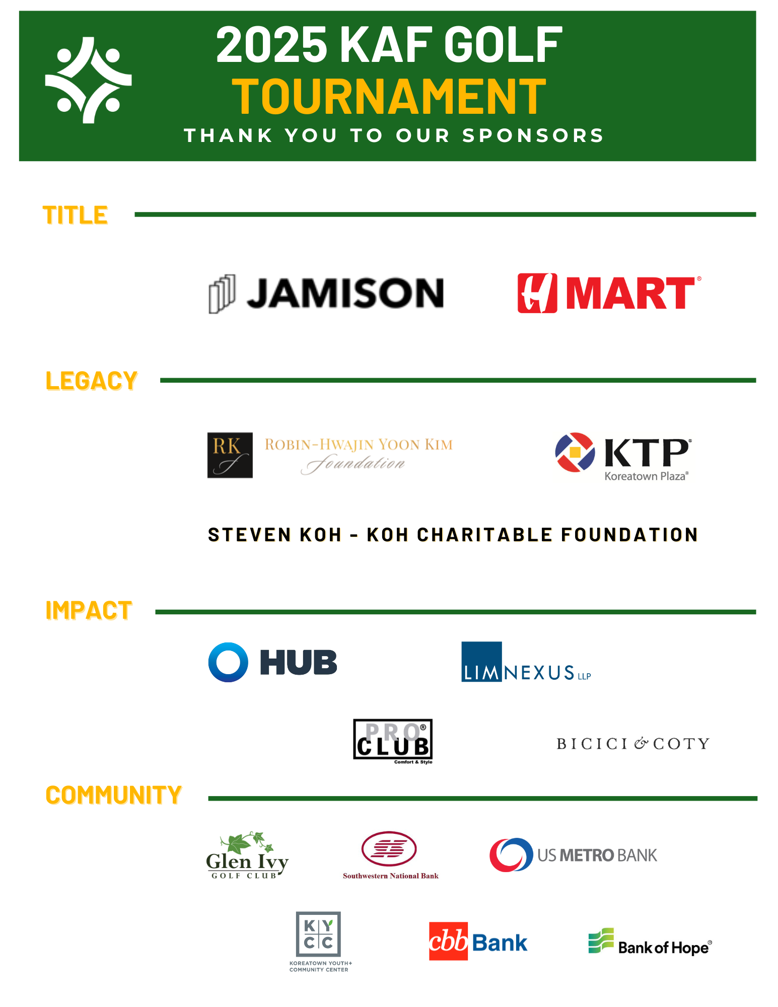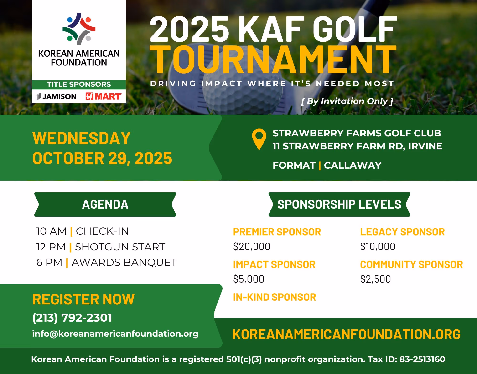 On Wednesday, October 29, Korean American Foundation is hosting our 2nd Golf Tournament in support of our General Fund – fueling community grants, sustaining core operations, and building a lasting endowment.